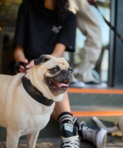 Correas de 3cm de ancho y 200cm de largo con diseño personalizado (estampa en cinta personalizada). Remaches en terminaciones y mosquetones reforzados para artículos de mascotas. Collares de 3 cm de ancho con diseño personalizado de Ruffo x Vita. Avios reforzados para articulos de mascotas.