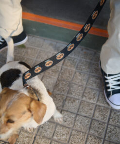 Correas de 3cm de ancho y 200cm de largo con diseño personalizado (estampa en cinta personalizada). Remaches en terminaciones y mosquetones reforzados para artículos de mascotas. Collares de 3 cm de ancho con diseño personalizado de Ruffo x Vita. Avios reforzados para articulos de mascotas.
