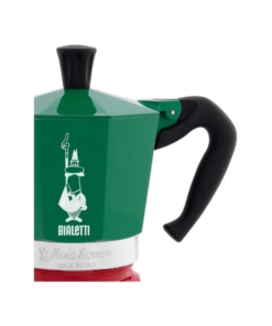 La Moka Express está fabricada en aluminio con asas de baquelita, por lo que posee una resistencia térmica superior a las cafeteras regulares.